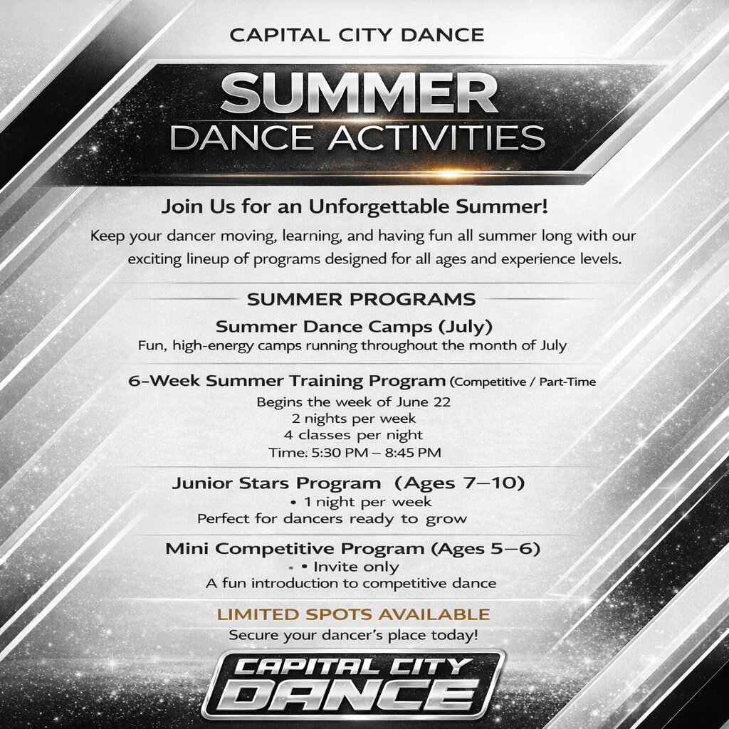 Capital City Dance offers kids dance classes in Ottawa for ages 2–18 — ballet, hip hop, jazz & more! Fun, supportive, and confidence-building.